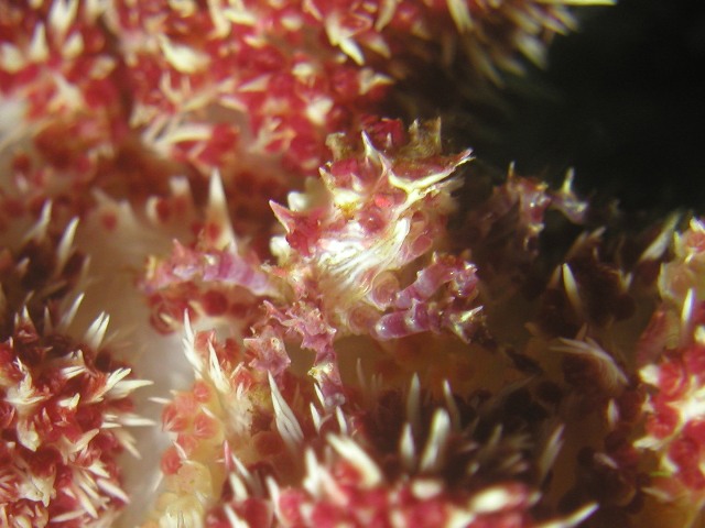 今日見た生物イロカエルアンコウ、オオモンカエルアンコウ、ミノカサゴ、サクラダイ、タカサゴ、コブダイ、ヒメギンポ、ダテハゼ、アオサハギ、ハナミドリガイ、ニシキウミウシ、ベニキヌヅツミガイ、ウスイロサンゴヤドカリ、マルソデカラッパ、アカマンジュウガニ、イボイソバナガニ他 |